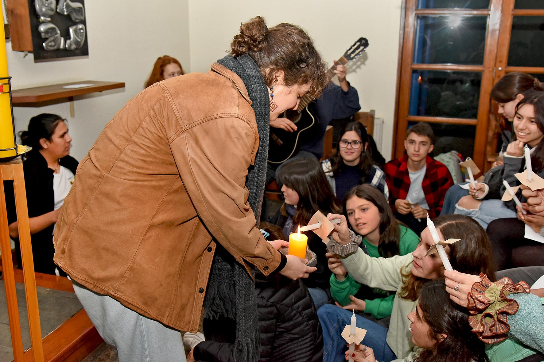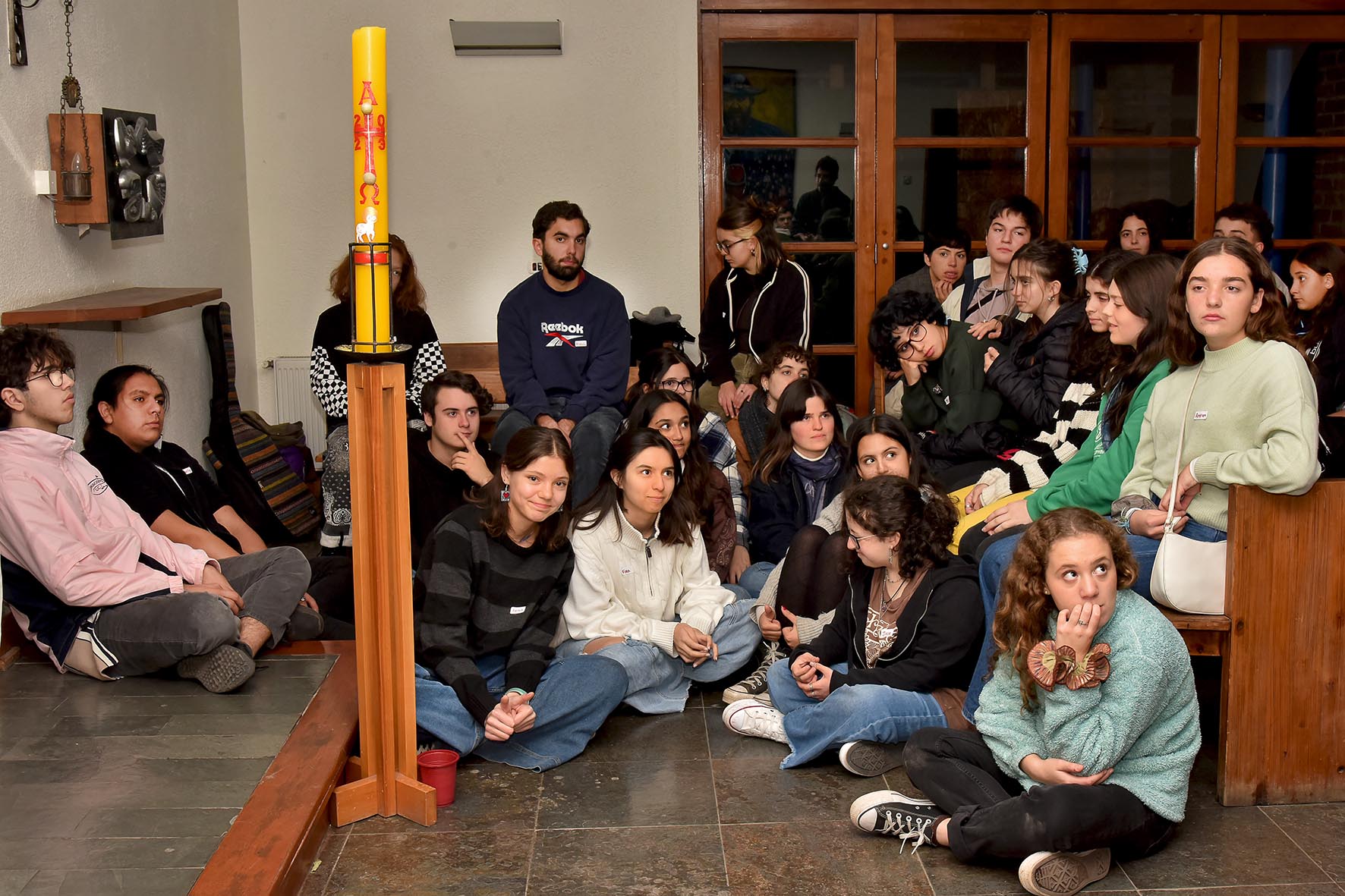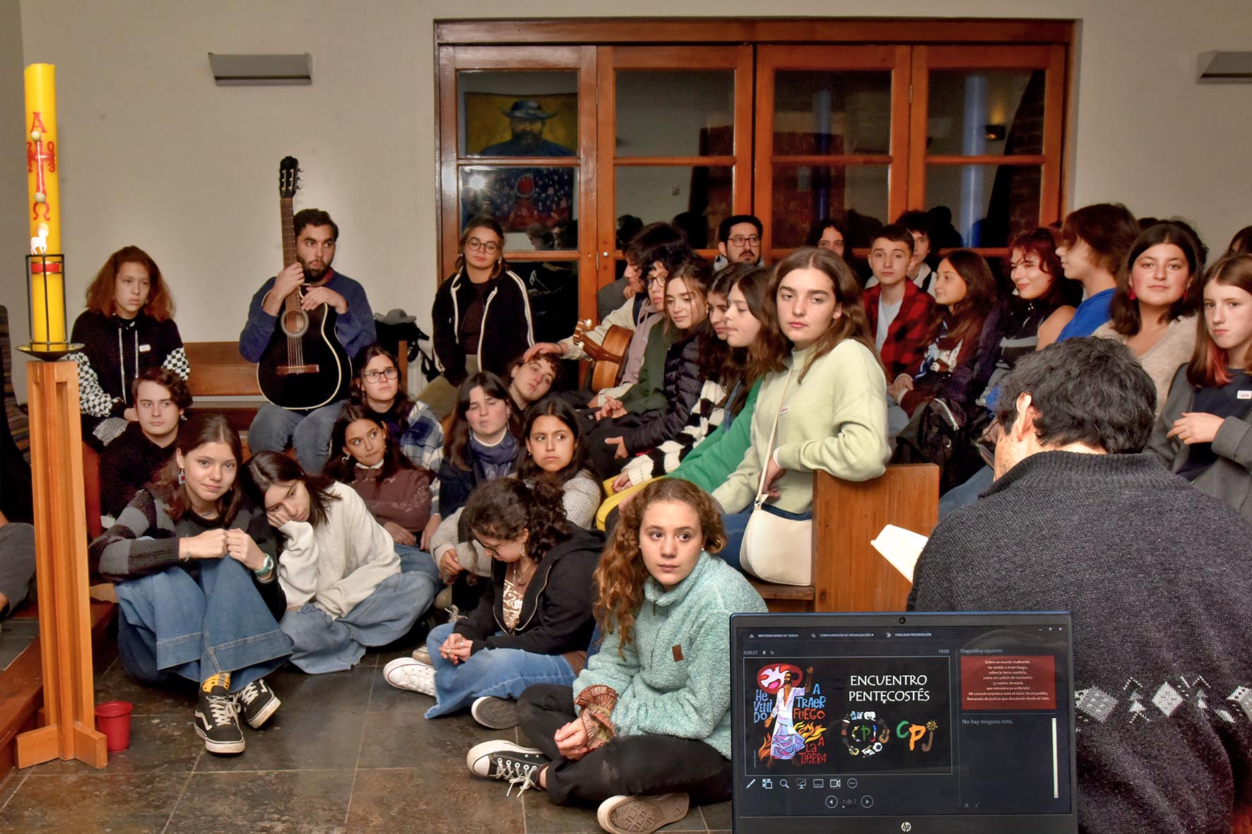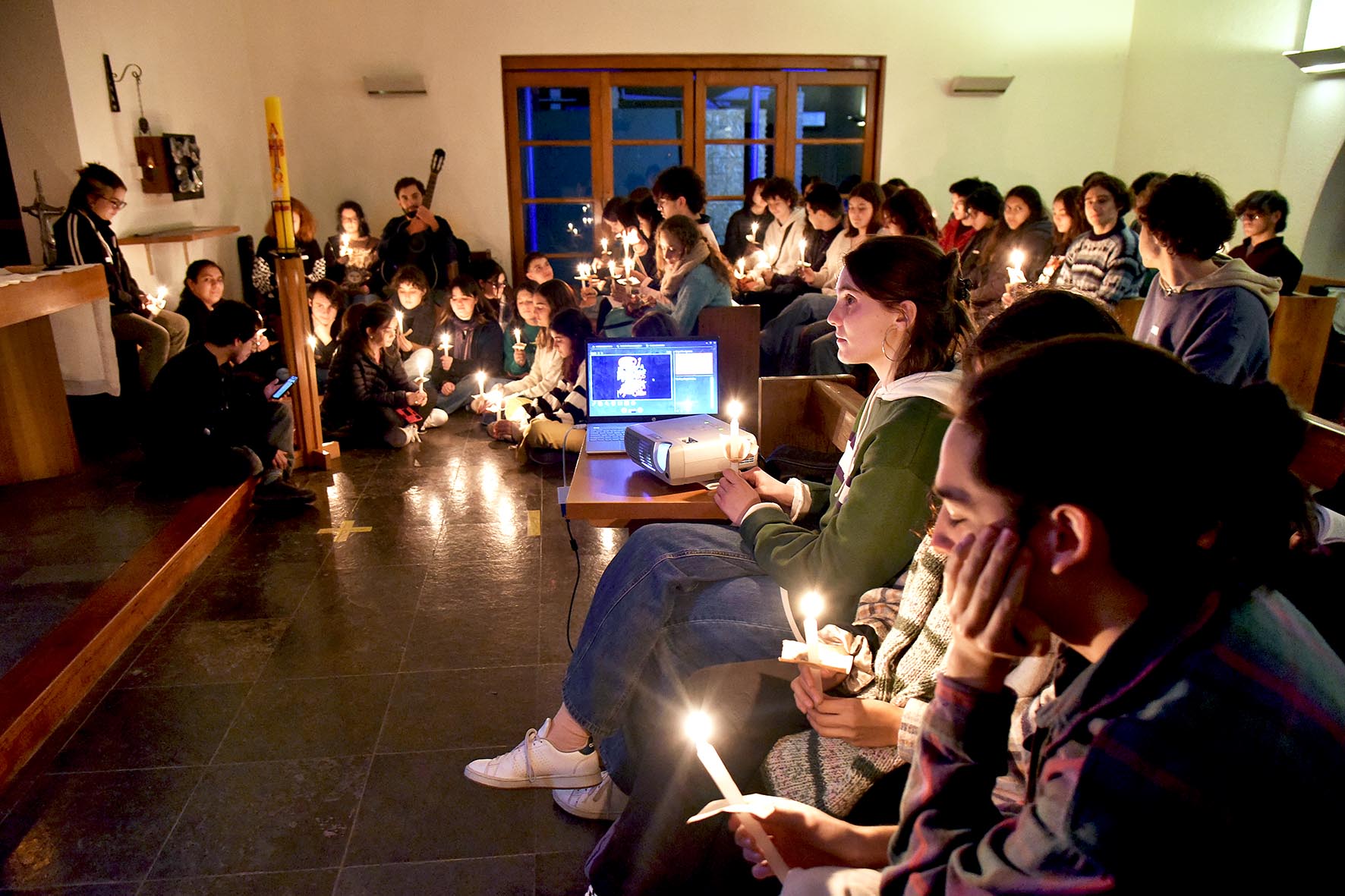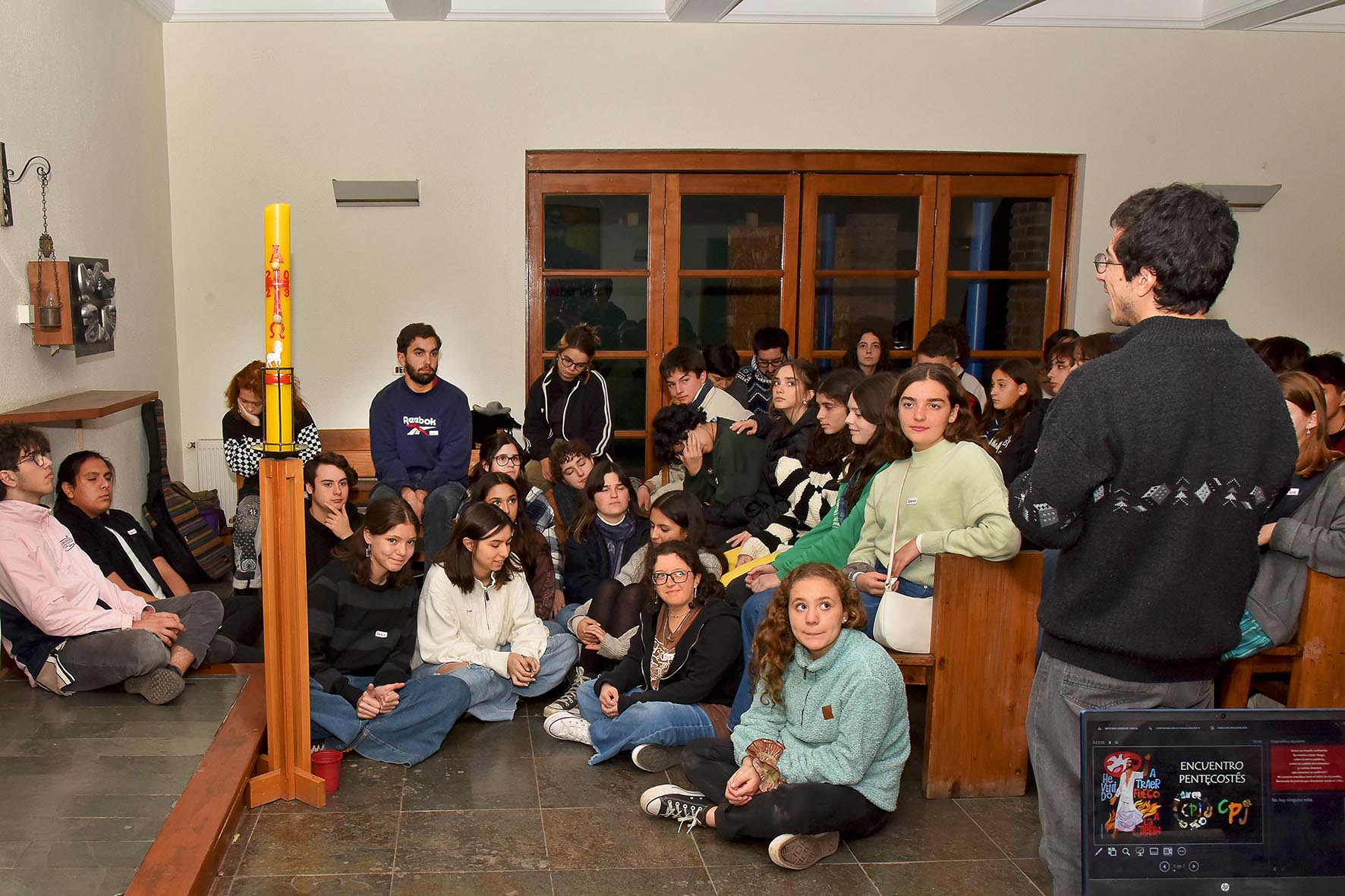 La reflexión grupal finalizó con una liturgia comunitaria, invocando los dones del Espíritu Santo, donde los jóvenes encendieron velas, cantaron y compartieron sus reflexiones.