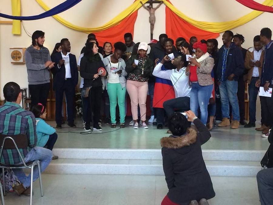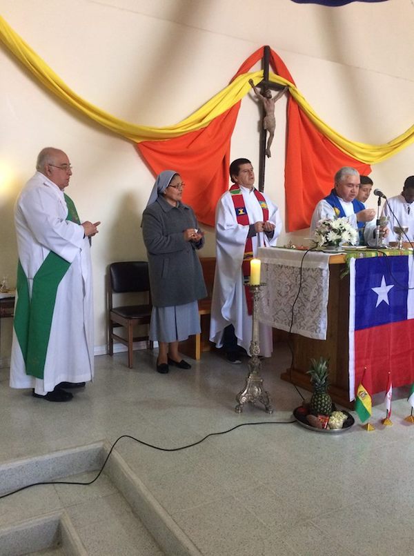 Patricia, Roxana y Gilberto Vigueras Cherres, junto a sus hijos llegaron a celebrar estas bodas de plata, y una familia amiga de tiempos inmemoriales cuando Alex acompañaba el CPJ de Concepción. Durante el ofertorio se presentaron varios signos relacionados con su vida: 7 globos, donde cada uno traía escrito algún don de Alex, una zampoña que simboliza su pasión por la música, un aguayo representando su cercanía a los bailes religiosos, una torta que refería a las comunidades parroquiales y una estola que fue llevada por sus hermanas y su hermano. Fue una eucaristía sencilla y emotiva.