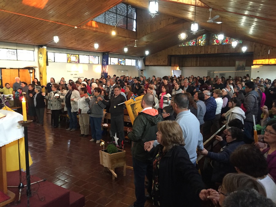El sábado amaneció radiante. El frontis de la parroquia preparada y la calle cerrada para recibir a la comunidad del barrio. Cada una de las 18 capillas que forman parte de la parroquia San José, iniciaron la procesión de entrada junto a las escuelas y otras instituciones.