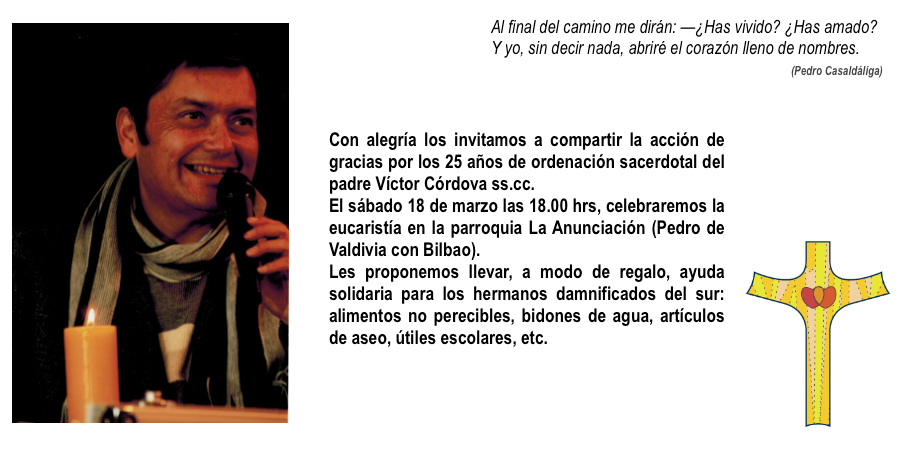 El pasado domingo 26 de marzo vivimos en el sur un día importante para las parroquias que acompañamos como Congregación. En Rio Bueno durante la mañana fue la instalación de Miguel Ángel Concha como Administrador Parroquial durante un año, acompañando el proceso para dejar la Parroquia Inmaculada Concepción de Rio Bueno. Durante la tarde fue el turno de La Unión, donde Pedro Pablo Achondo asumió como párroco del hermoso templo San José. Ambas eucaristías fueron presididas por el Obispo de Valdivia, don Ignacio Ducasse y acompañadas también por el provincial de los SS.CC. Alex Vigueras.