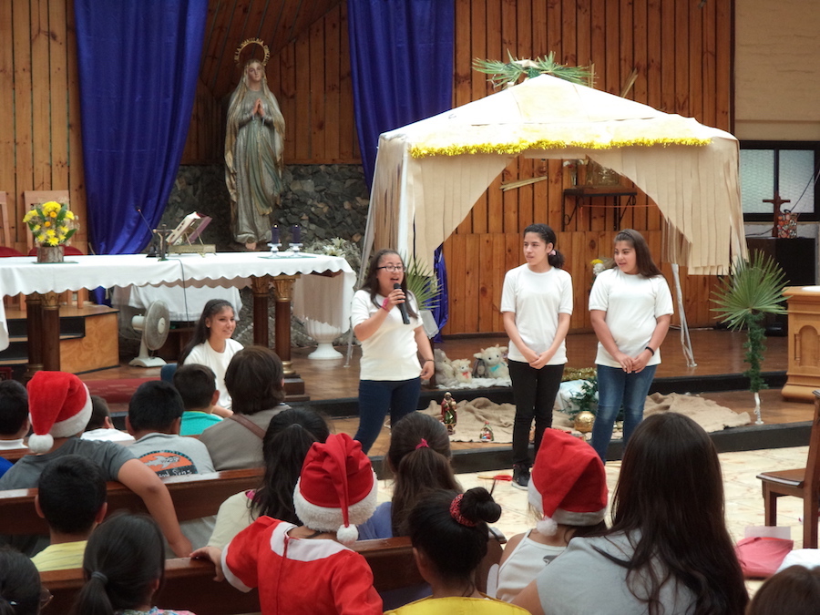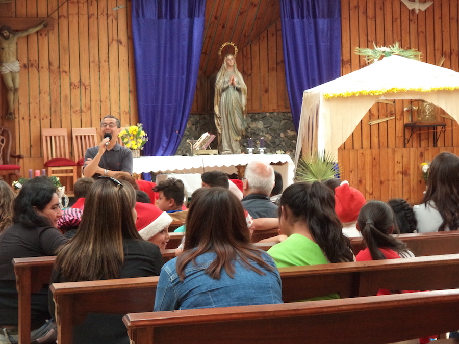 Durante su homilía Víctor invitó a pasar adelante al padre Gabriel Giraud, que es uno de los hermanos mayores de la provincia, y a Bastián Mena, hermano profeso más joven de la congregación. Junto a ellos, conversaron sobre su vocación, sobre el llamado, el servicio que significa ser sacerdote o prepararse para aquello, cómo era antes, en los años del padre Gabriel y cómo lo es hoy.